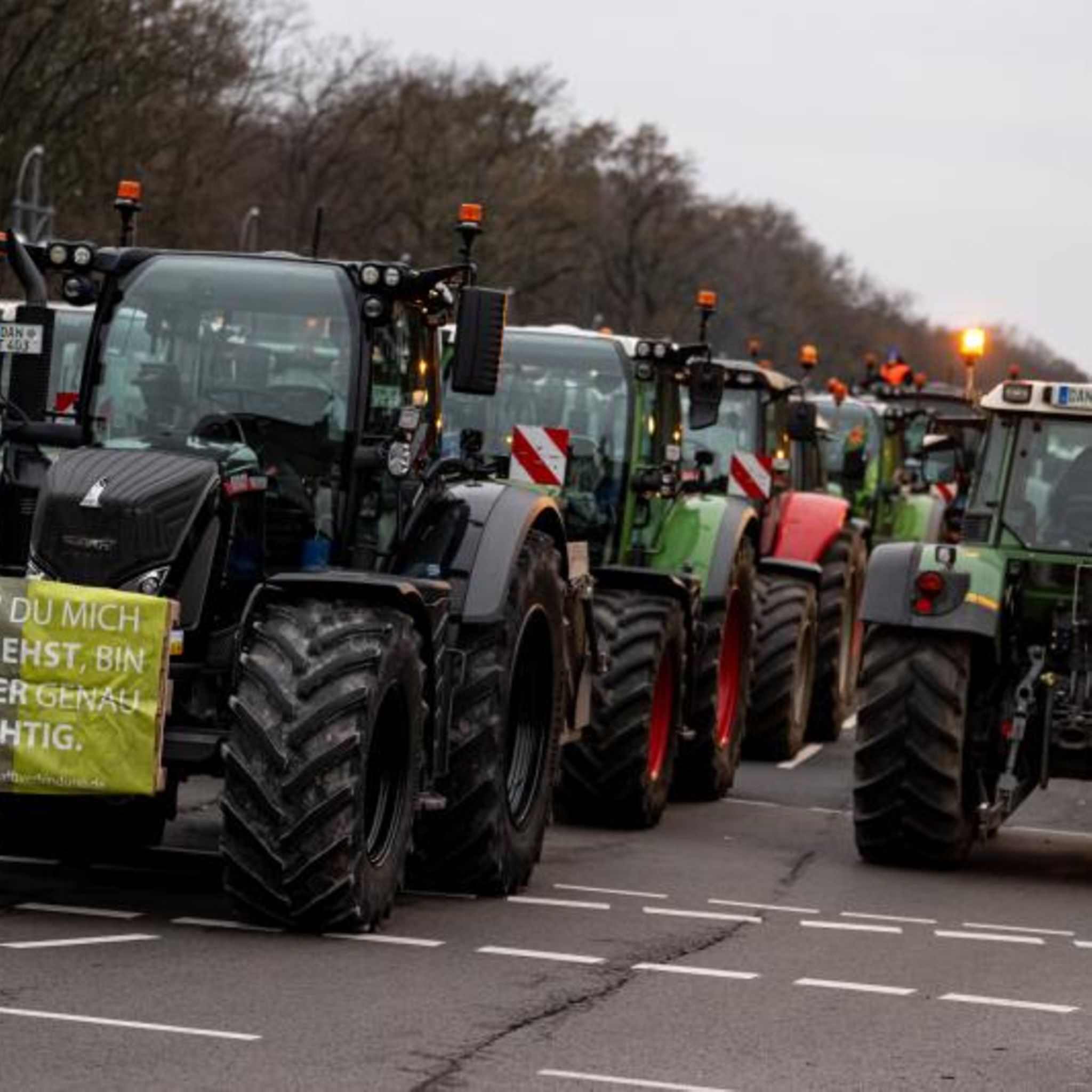 Berlin, Deutschland. Unter dem Motto "Zu viel ist zu viel! Jetzt ist Schluss!" machen sich Hunderte Landwirte mit ihren Traktoren auf den Weg in die Hauptstadt. Anlass für die Demonstration des Deutschen Bauernverbandes sind die Pläne der Bundesregierung, den Agrardiesel und die Kfz-Steuerbefreiung für die Land- und Forstwirtschaft zu streichen.