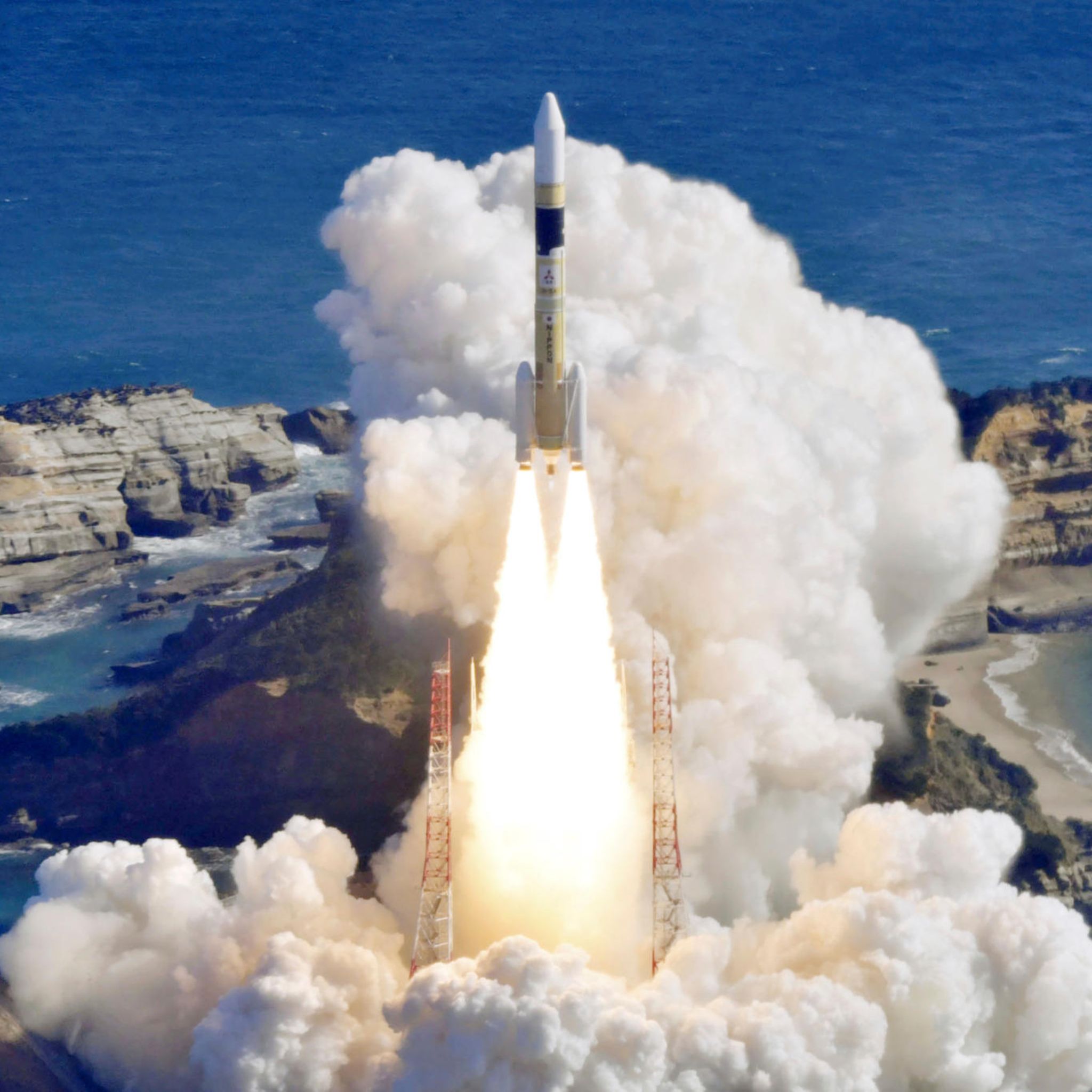Kagoshima, Japan. Eine H2A-Rakete startet von der Startrampe im Tanegashima Space Center im Süden des Landes. An Bord: Ein staatlicher Aufklärungssatellit, der Bewegungen an militärischen Standorten in Nordkorea beobachten und die Reaktion auf Naturkatastrophen verbessern soll.