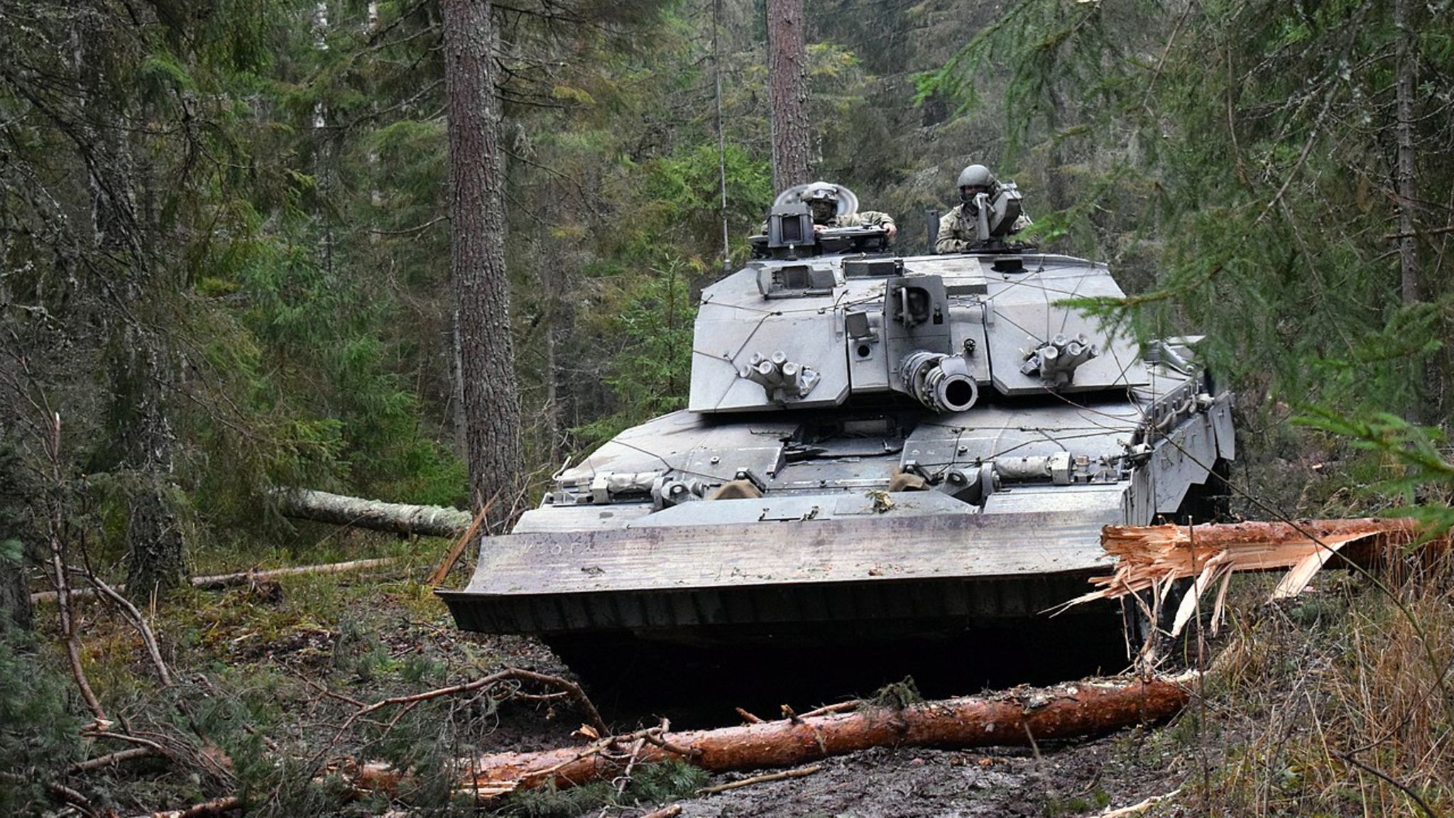 Für die Übung in Estland wurde dieser Panzer mit einem Räumschild ausgestattet.