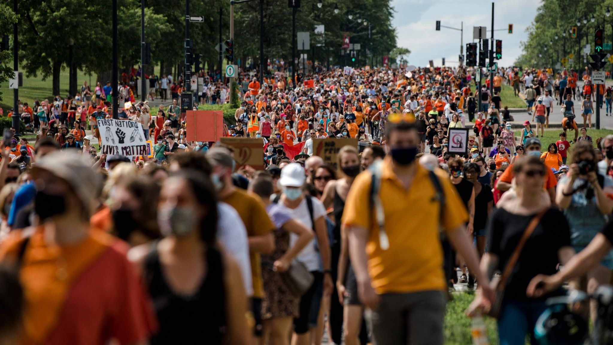 Tausende, nicht nur indigene Kanadier nahmen während des Nationalfeiertags an den "Every Child Matters"-Märschen teil – hier in Montréal, der größten Stadt des Bundesstaates Québec.
