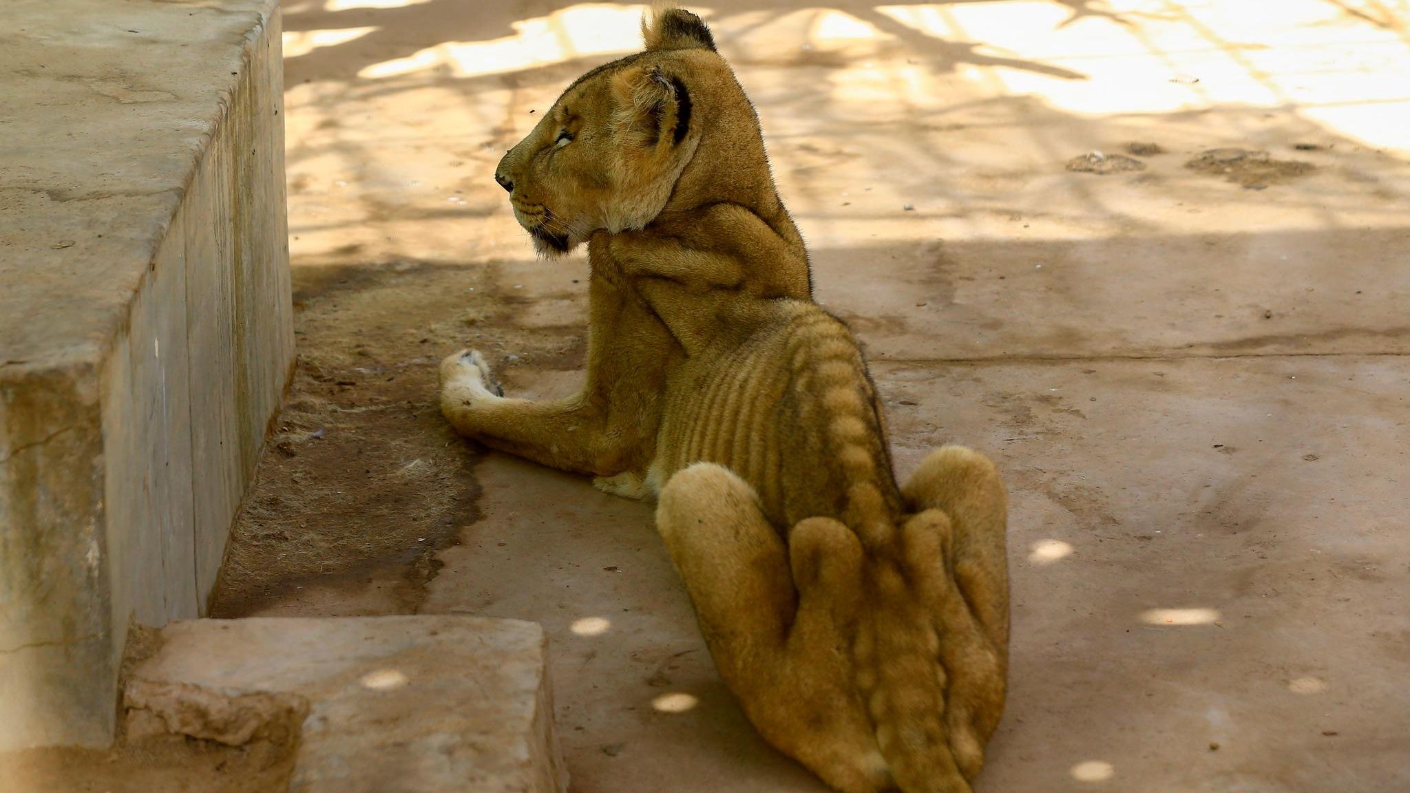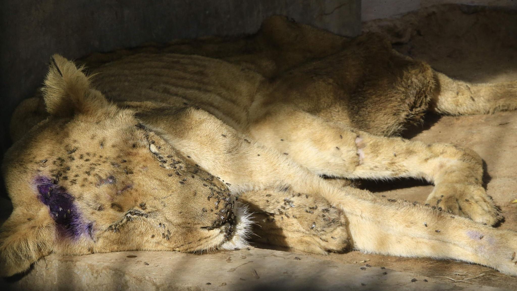Abgemagert streunen sie durch ihre Käfige, die Knochen stehen unter der Haut hervor, Fliegen lassen sich auf dem Fell nieder: Die Löwen im Zoo von Khartum sind vom Hungertod bedroht. Die Nachrichtenagentur AFP berichtet, dass in der Hauptstadt des Sudan bereits ein Löwe an Unterernährung gestorben ist. Fünf weitere Tiere fristen im Al-Qureshi-Park ein bedauernswertes Schicksal, weil der Zoo offenbar nicht die finanziellen Mittel besitzt, um die Löwen angemessen mit Futter und Medizin zu versorgen.