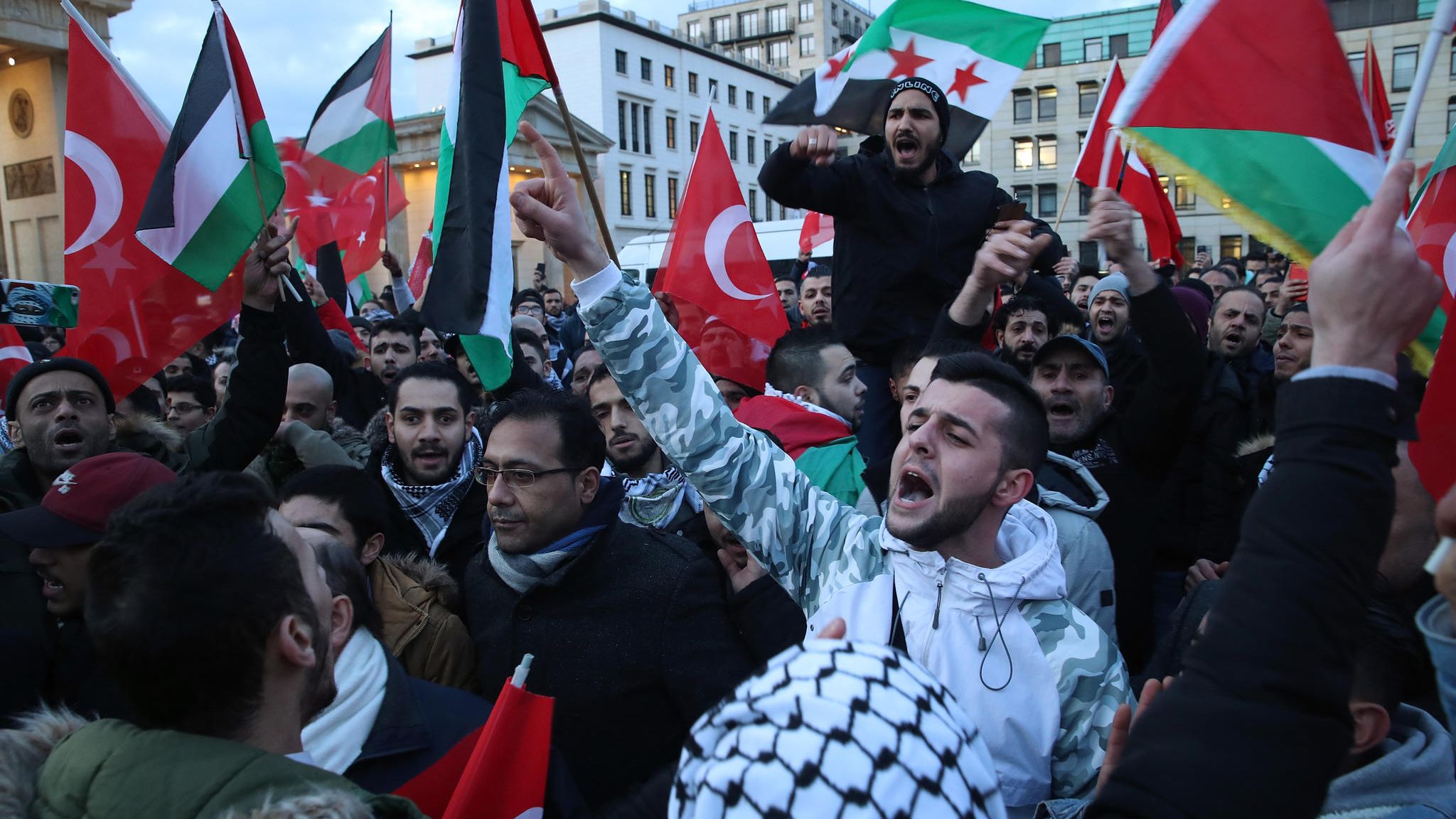 Rund 1200 Menschen haben vor dem Brandenburger Tor in Berlin gegen die Jerusalem-Entscheidung des amerikanischen Präsidenten Donald Trump protestiert. Die Kundgebung in der Nähe der US-Botschaft, bei der zahlreiche Palästinenser-Flaggen geschwenkt wurden, sei ohne größere Störungen verlaufen, sagte ein Polizeisprecher. Zwei israelische Flaggen seien bei dem Protest verbrannt worden. Die Polizei sei in der Spitze mit 450 Beamten vor Ort gewesen.