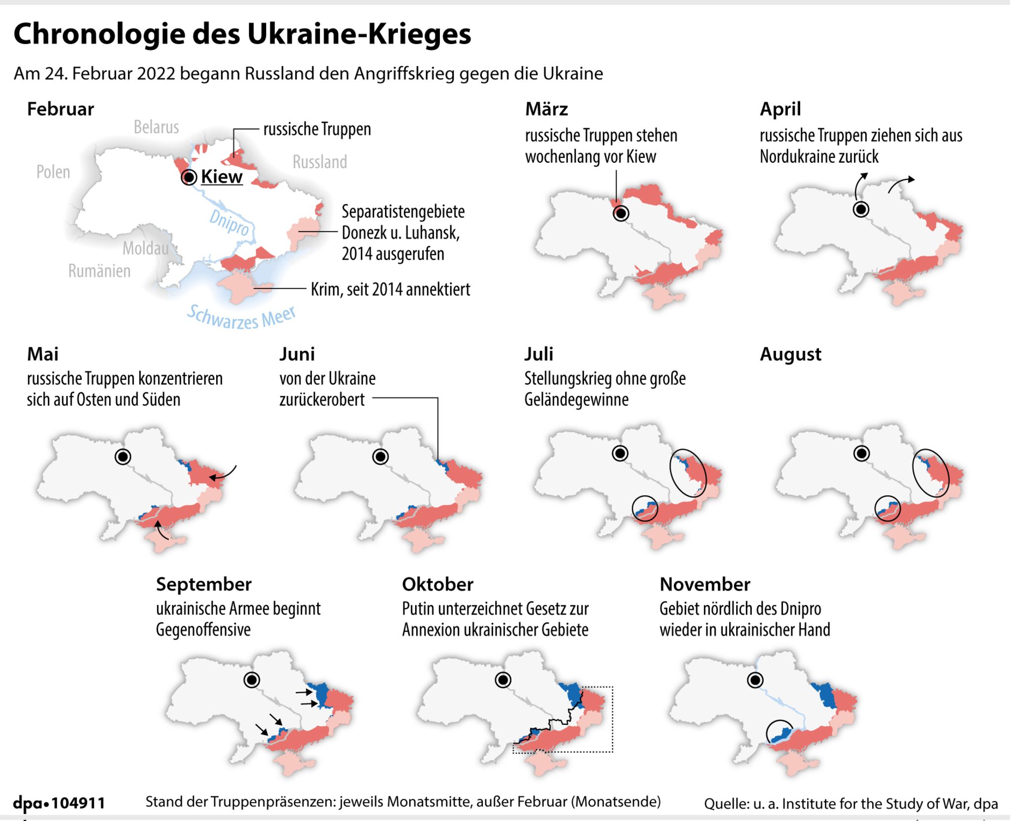 "Russlands Angriff auf die Ukraine: Frontverlauf im Laufe des Jahres" (Stand: 1.12.2022)