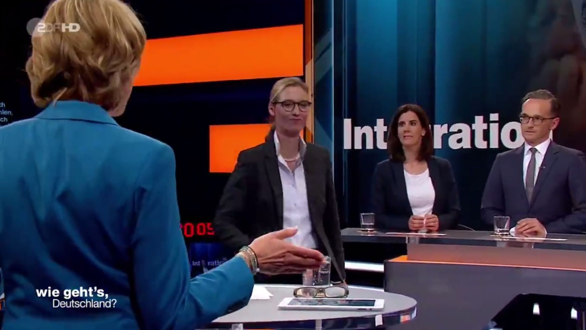 Die AfD-Spitzenkandidatin Alice Weidel hat am Dienstagabend die ZDF-Wahlsendung "Wie geht's Deutschland?" nach einem Schlagabtausch vorzeitig verlassen. Unmittelbar zuvor hatte sie sich ein Wortgefecht mit dem CSU-Generalsekretär Andreas Scheuer geliefert, weil der sie aufgefordert hatte, sich vom Co-Spitzenkandidaten Alexander Gauland und dem thüringischen AfD-Landesvorsitzenden Björn Höcke zu distanzieren.
