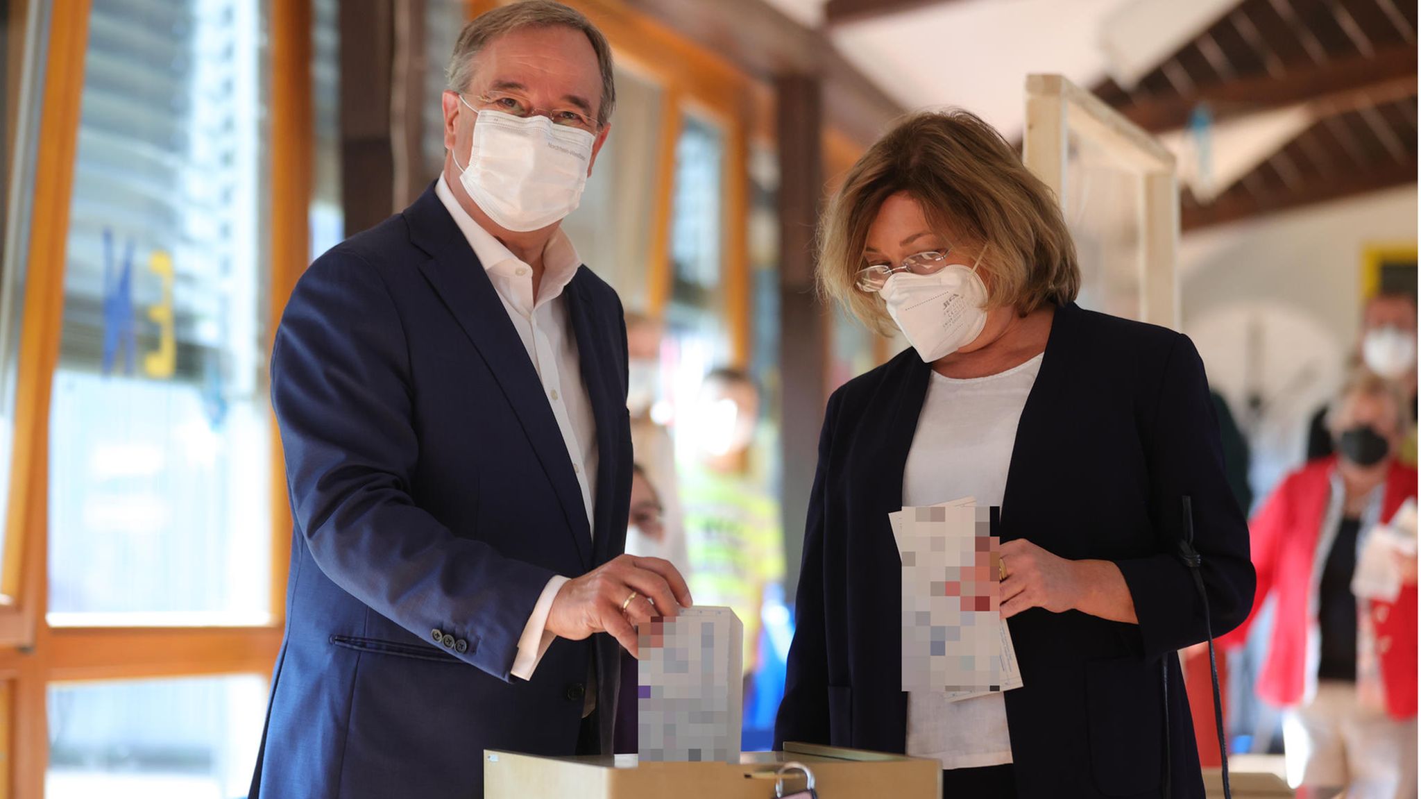 Wegen des Wahlgeheimnisses ist es nicht erlaubt, seinen Stimmzettel offen einzuwerfen. Der Wähler müsse ihn "in der Weise falten, dass seine Stimmabgabe nicht erkennbar ist", heißt es auf der Website des Bundeswahlleiters. Sollte die Stimmabgabe erkennbar sein, müsste der Wahlvorstand den Wähler zurückweisen. Normalerweise wird im Wahllokal darauf hingewiesen, wie der Zettel gefaltet werden muss. Ungültig wird die Stimme Laschets nicht, teilte der Bundeswahlleiter am Nachmittag auf Twitter mit. "Kommt es zu einer Fehlfaltung, teilt der Wahlvorstand einen neuen Stimmzettel aus. Gelangt der Stimmzettel dennoch in die Wahlurne, kann er nicht mehr aussortiert werden und ist gültig", heißt es in einem Tweet. Zudem sei keinerlei Wählerbeeinflussung ersichtlich, da ein Politiker "wie erwartet seine eigene Partei gewählt hat".